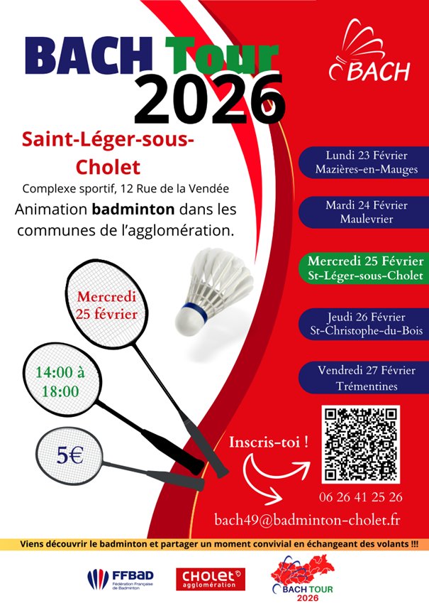 Viens découvrir le badminton et partager un moment convivial en échangeant des volants le mercredi 25 février 2026 à Saint-Léger.