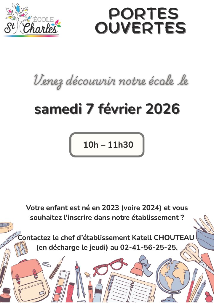 PORTES OUVERTES ECOLE SAINT CHARLES / INSCRIPTION ENFANT NÉ EN 2023 (VOIR 2024)