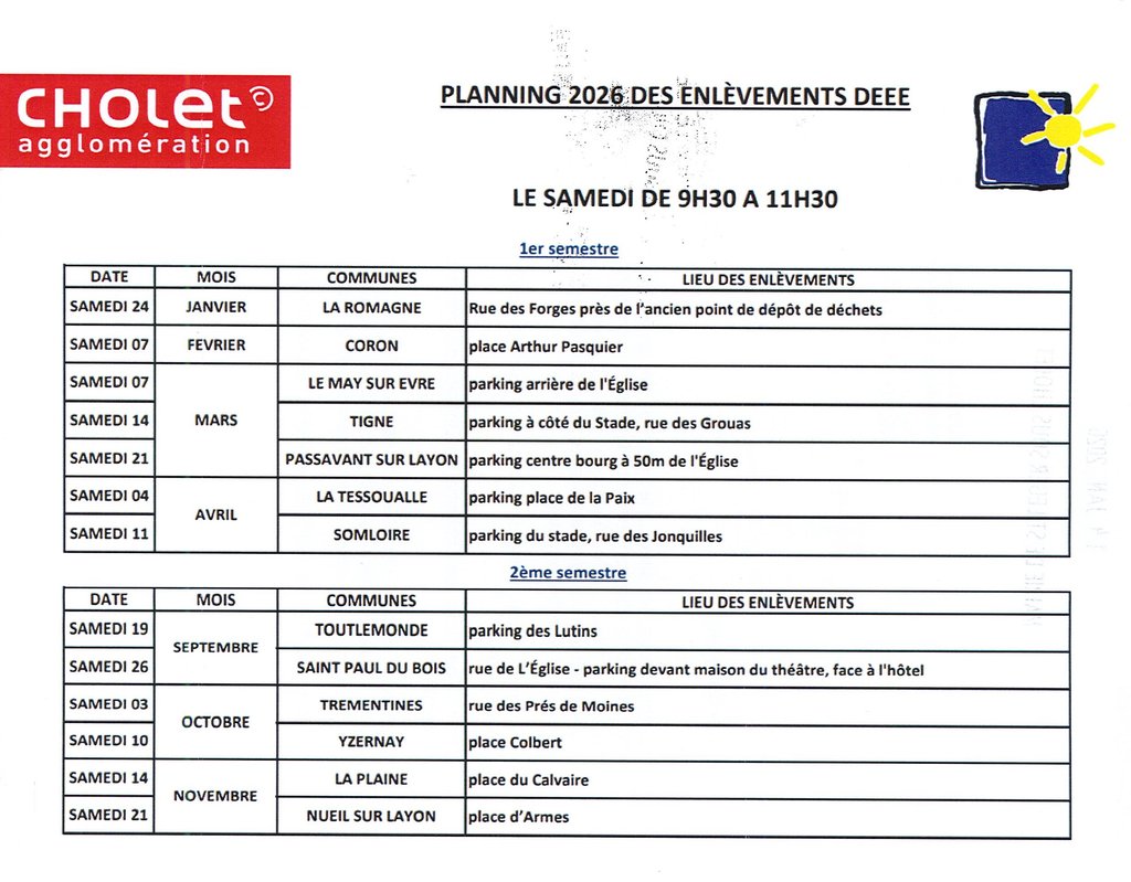 PLANNING 2026 ENLÈVEMENTS DÉCHETS D'ÉQUIPEMENTS ÉLECTRIQUES ET ÉLECTRONIQUES